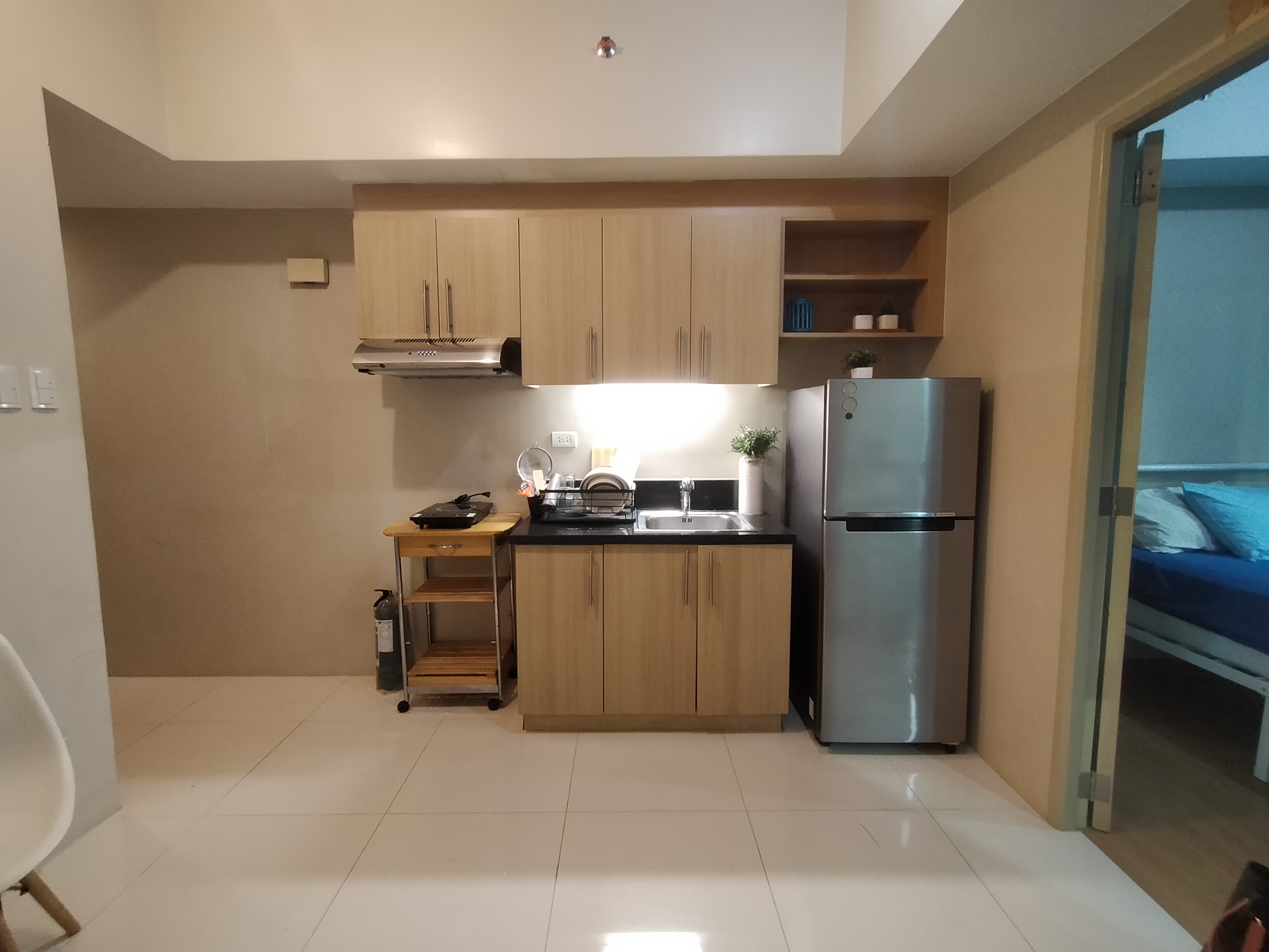 - Kitchenette with microwave, induction cooker, rangehood